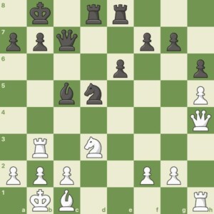 Marcel (wit): “Hier kwam ik met het plan Td1 De4 Pd4 f4. Op zich een prima plan. Maar de engine geeft aan dat ik gerust op a7 had kunnen nemen. Ik vertrouwde Pf4 niet. Maar de engine ziet na Te1 dan helemaal geen probleem. Jammer.”