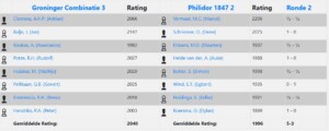 Dylan Roersma speelde aan het achtste bord. Hij is 13 jaar en het is hem niet kwalijk te nemen dat hij nog niet alle belangrijke partijen uit het verleden kent. Het grijze deel van het team moest bij het zien van de partij van Dylan direct denken aan het dubbele loperoffer van Lasker in de partij Lasker – Bauer uit 1889. Dylan kreeg eveneens een dubbel loperoffer om de oren, en dit zal hem niet weer overkomen.
