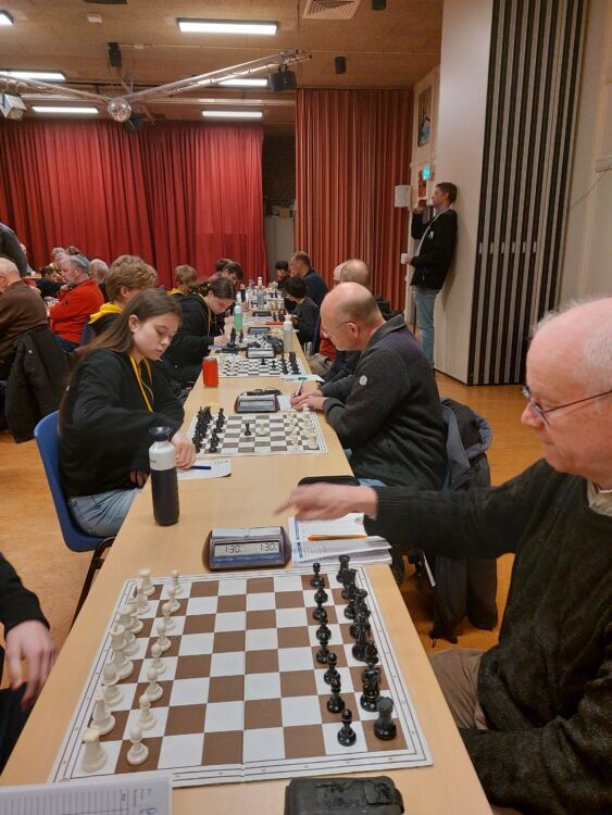 De eerste thuiswedstrijd van dit seizoen én in de nieuwe speellocatie vond plaats tegen een jeugdig team van de Paardensprong. Een team met allemaal spelers onder de achttien jaar en de twee jongste spelers van 11 jaar, dat komt niet vaak voor in de KNSB. Wat ook niet vaak voorkomt is de jongste speler en debutant Henry met een leeftijd van zeven jaar, het zou mij en anderen niet verbazen als hij de jongste speler ooit in de KNSB zou zijn. Ook Jim is met negen jaar een fenomeen. Daarnaast is het opvallend is dat beide spelers zeer rustig, bijna professioneel spelen, dit belooft veel voor de toekomst.