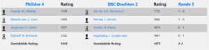 Bij Roodbaard knalden de donderbussen als vanouds over bord 3, maar bij het optrekken der kruitdampen stond hij gewoon een paar pionnen achter en moest hij de Jolly Roger strijken. Long John Silver verloor aan bord vier ook. 2-0 achter dus.